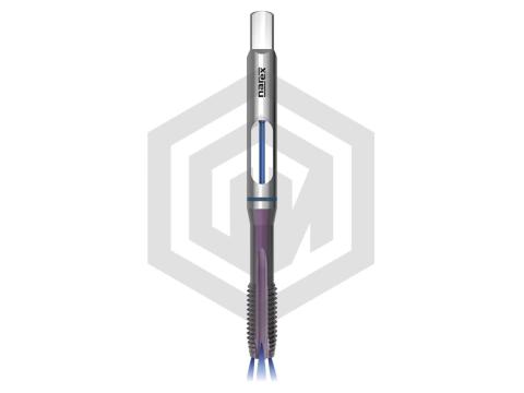 Метчик изготовлен из быстрорежущей стали с кобальтом в составе (5–8%) повышает жаростойкость и твердость при высоких температурах HSSE-PM, Благодаря этому, HSSE-PM-метчики лучше работают на высоких скоростях резания и при сухой обработке, менее подверженным поломке при колебаниях нагрузки или при нарезании резьбы в отверстиях с прерывистым контуром. Благодаря более равномерной структуре и высокой твердости, HSSE-PM метчики дольше сохраняют режущую кромку, имеют высшую износостойкость, чем HSS-E.