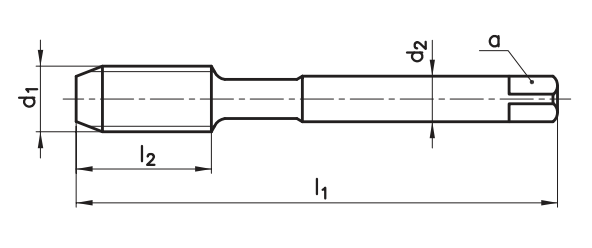 Размер резьбы | Шаг, мм | l1, мм | l2, мм | d2, мм | a, мм | Количество зубьев | Размер сверла, мм |