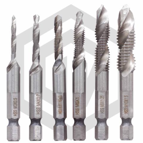 Метчики комбинированные комплект M3–M10 HSS 4241 STI — универсальный набор резьбонарезного инструмента, включающий размеры от M3 до M10. Комбинированная конструкция позволяет за одно движение сверлить отверстие и нарезать резьбу, что значительно ускоряет процесс и упрощает работу.
