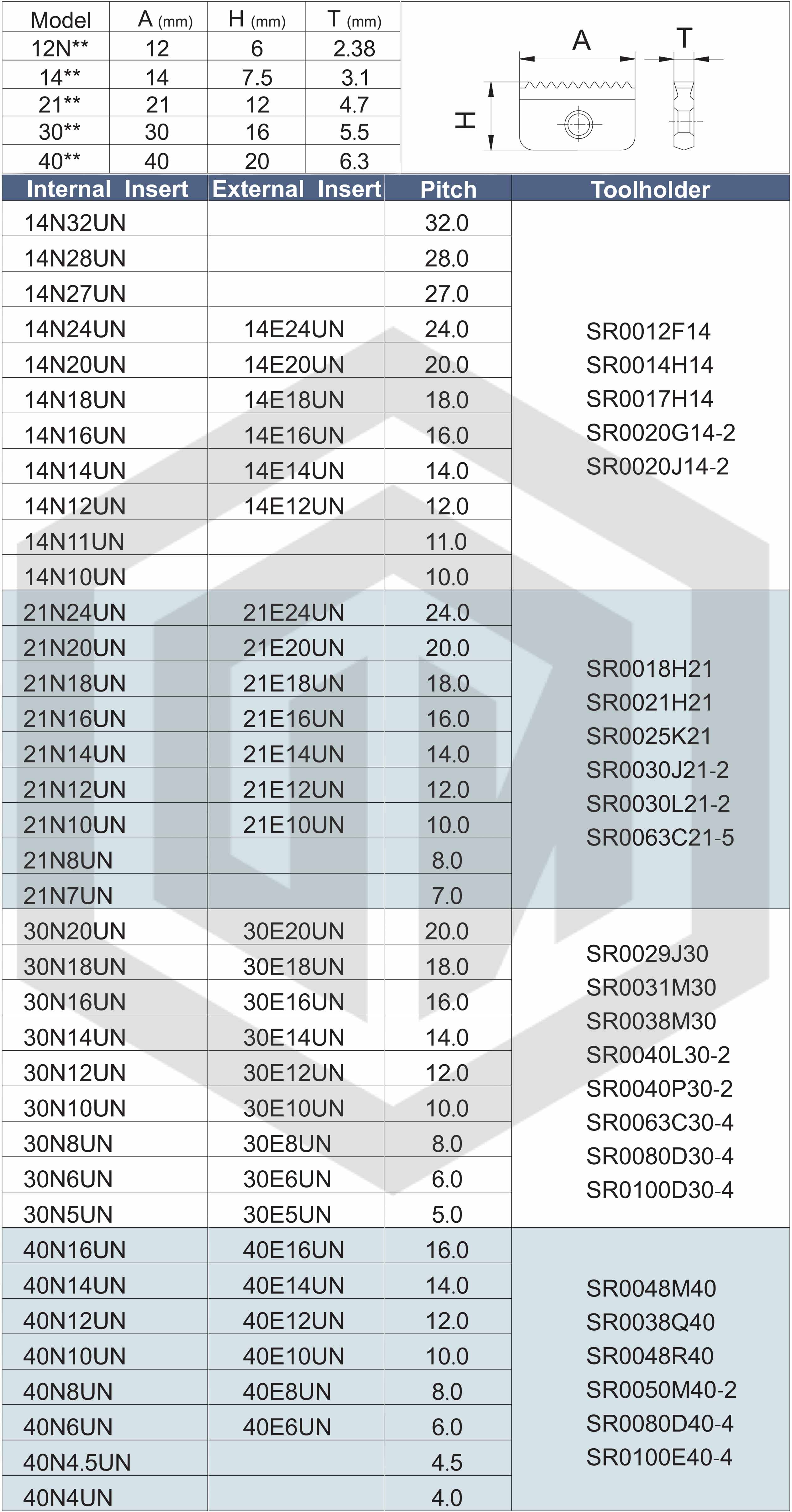• Сменная твердосплавная пластина-гребёнка 21I24UN применяется для нарезания американской резьбы UN 60° с шагом 24 . Может применяться на фрезерных станках с ЧПУ с возможностью перемещения инструмента по винтовой интерполяции. Используется в составе корпусных резьбофрез (приобретаются отдельно).