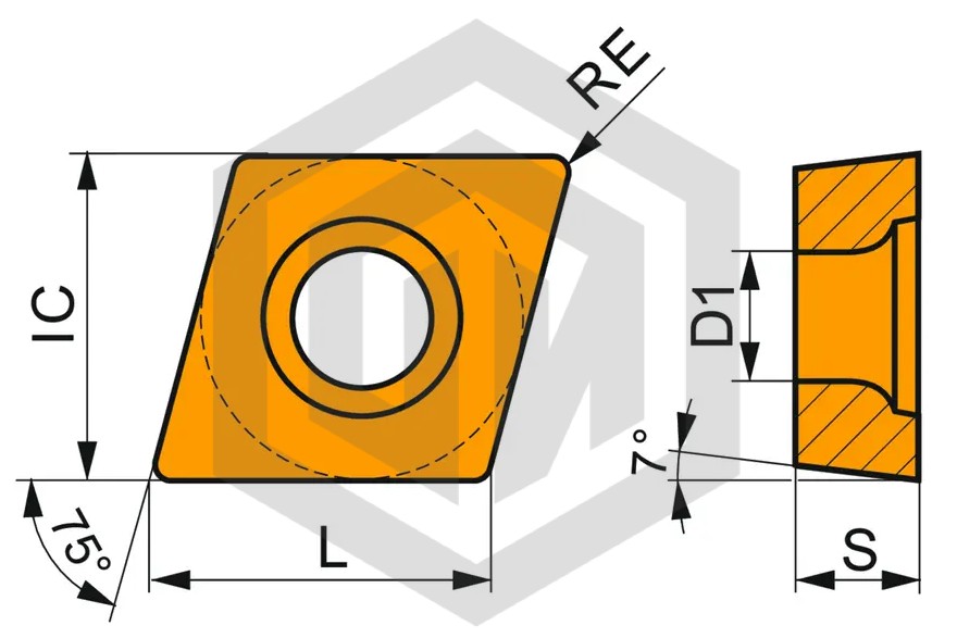 Наименование | lC, мм | D1, мм | L, мм | S, мм | RE, мм |